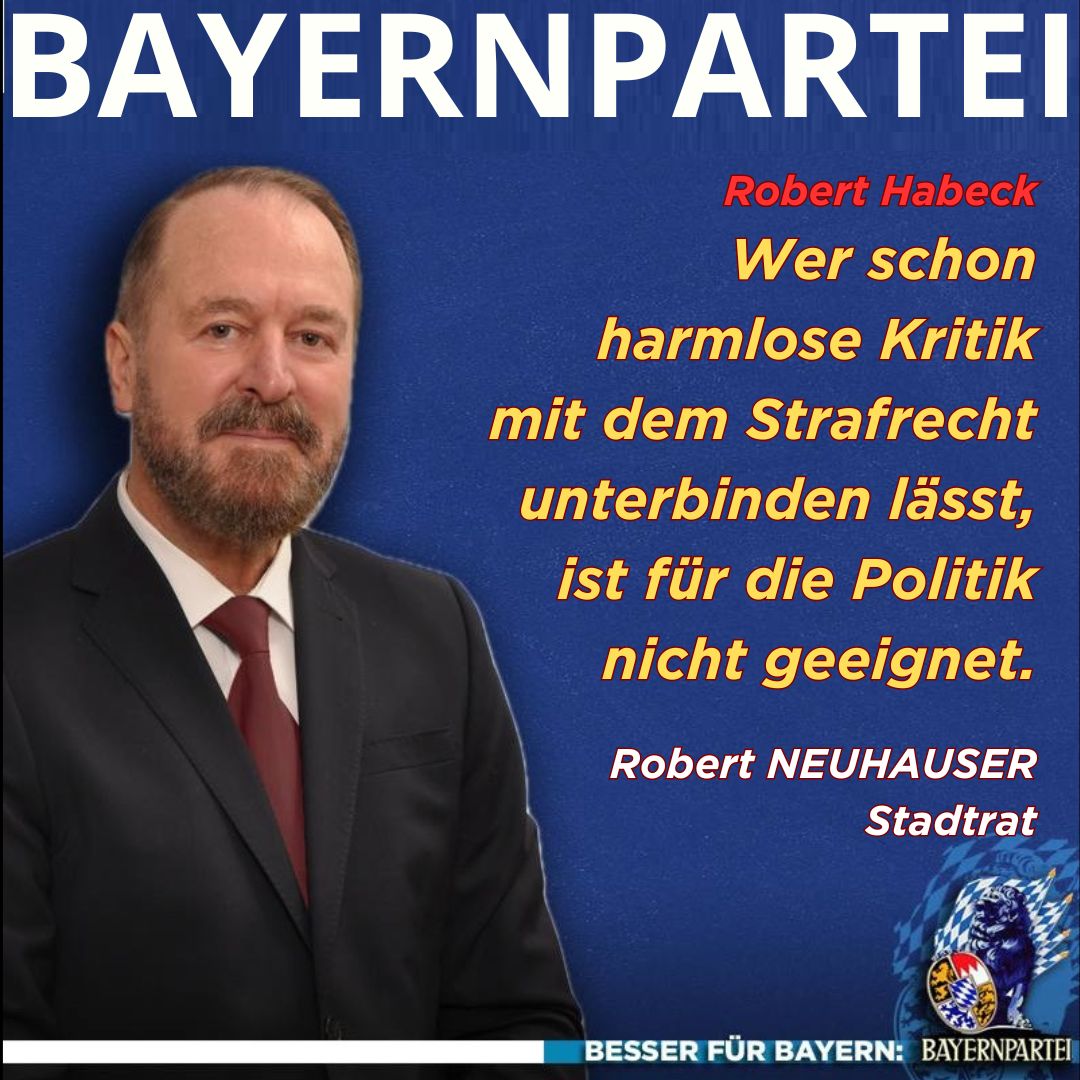 Robert Neuhauser (Bayernpartei): Wer schon harmlose Kritik mit dem Strafrecht unterbinden lässt, ist für die Politik nicht geeignet.